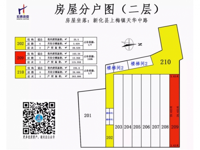 二層商業(yè)房產(chǎn):202號(產(chǎn)權(quán)占有份額:1/7),209號(產(chǎn)權(quán)占有份額:100%),210(產(chǎn)權(quán)占有份額:1/7);